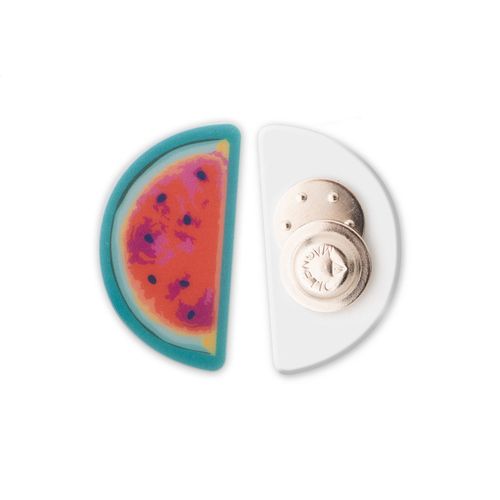 Custom made plastic badge with magnetic pin and full colour printing. Produced in custom shape - maximum size: 50x50 mm. Price includes UV LED printing. MOQ: 100 pcs.