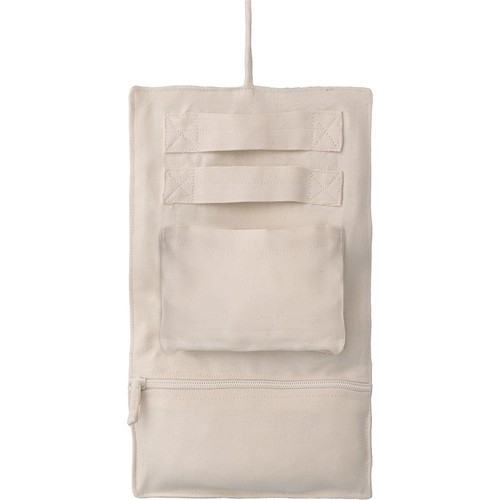 Jeweler made of 200 gr/m² cotton with two straps, one open pocket and one zipped pocket.