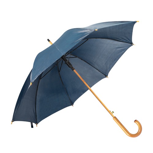 Umbrella made of polyester 190T with 100 cm diameter, automatic opening and a handle and structure made of wood.