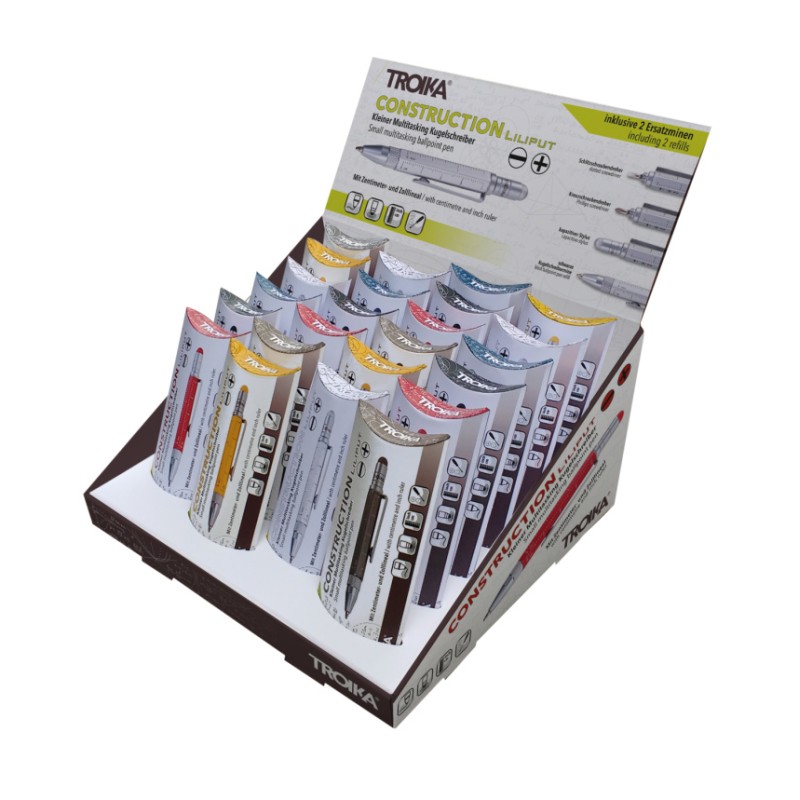Introducing the LILIPUT TOOL PEN by TROIKA - the ultimate multitasking ballpoint pen for those who love efficiency and convenience. This sleek and compact pen is equipped with multiple built-in tools, including a ruler, stylus, Phillips and flathead screwdrivers, and a spirit level. Crafted with high-quality materials, the LILIPUT TOOL PEN is not only a reliable writing instrument but also a handy tool for everyday tasks. Whether you're in the office, at home, or on the go, this versatile pen is sure to become your go-to companion for all your daily needs. Elevate your productivity and style with the LILIPUT TOOL PEN by TROIKA.
