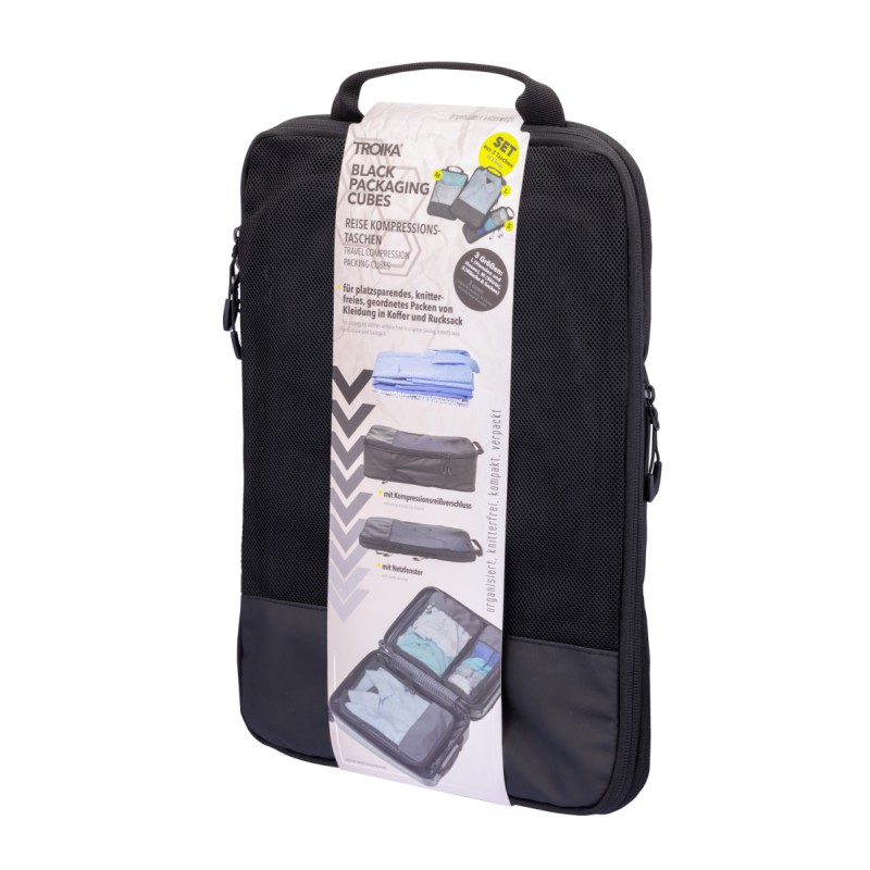 Set of travel compression packing cubes-TROIKA BLACK PACKING CUBES